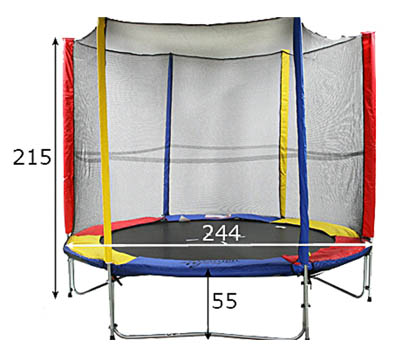 Размеры батута: диаметр 244 см., высота от пола до полотна 64 см.