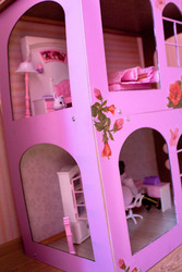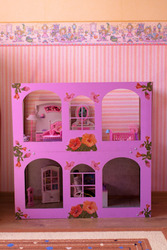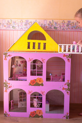 Мы предлагаем прекрасный 3 этажный складной домик для кукол. В нем можно играть и маленькими куколками и большими, такими как Барби, Винкс, Мокси, Братц, Монстр Хай и другими куклами высотой до 40 см. Компоновать мебелью и аксессуарами по своему усмотрению. Удобные большие окна для игры с трех сторон. Особенность домика в том, что в разобранном состоянии он не занимает много места и может храниться в шкафу, на балконе или на антресоли. Вы всегда можете взять с собой разборной кукольный домик к друзьям или к любимой бабушке! Собирается в течении 10 минут и не требует специальных инструментов, кроме крестообразной отвертки. Стены оклеены настоящими обоями, которые можно заменить на любые понравившиеся вам. Фасад домика для кукол украшает декупаж. На 3-ем этаже находится чердак и открытая веранда, где куклы могут принимать солнечные ванны. Крыша чердака позволяет, как полностью закрыть, так и сделать навес над верандой, или совсем убрать её.