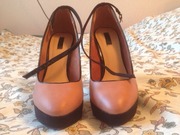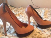 Продам эффектные туфли Bershka. Размер указан 38, идет на 37. Каблук 12 см, платформа. Обувались 2 раза на праздник. Цвет персиковый. |