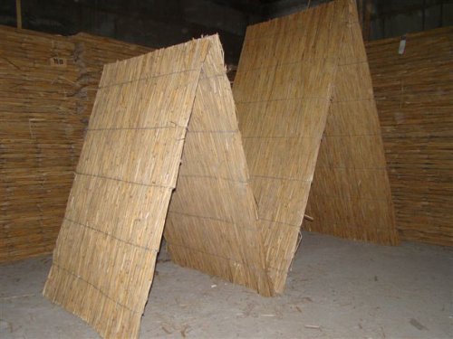 Изделия из тростника (камыш): плиты и маты (рулоны) Применение: Крыши, навесы, козырьки от солнца; изгороди, для беседок Изделия из тростника (камыш) рулон; плита Голландские технологии в Украине. Применение: Навесы, козырьки от солнца; изгороди, заборы в том числе на пляжах и парках, декоративный и отделочный материал при изготовлении летних беседок; утеплитель для различных видов растений и др. Экологический материал, не требующий дополнительной отделки и обработки, создающий уют и тепло как в помещении, так и на улице. |