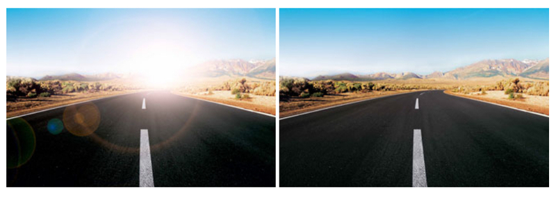 дорожное полотно и др.),а также при определенных состояниях атмосферы.Если бликов нет,такие линзы функционируют как обычные солнцезащитные.Но когда