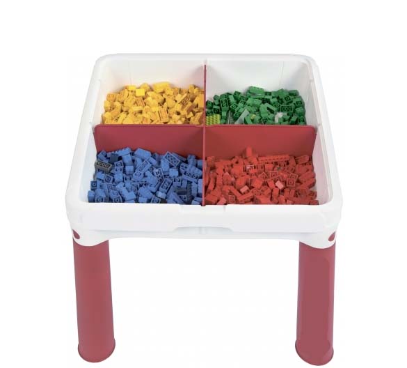 3. Как пространство для хранения. Под крышкой стол разделён на 4 секции, в которых можно хранить конструктор и аксессуары для творчества
