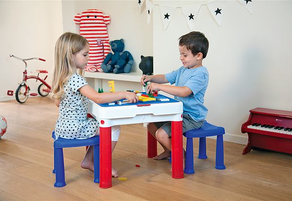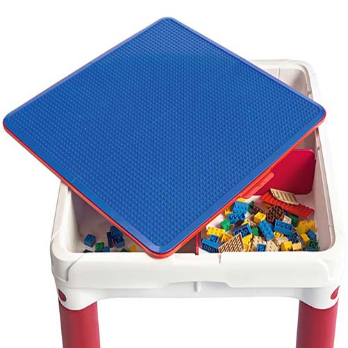 - вторая - гладкая поверхность идеально подходит для таких творческих активностей, как рисование, лепка и другие виды художественной деятельности превращая стол для игры с конструктором в стол для творчества.
