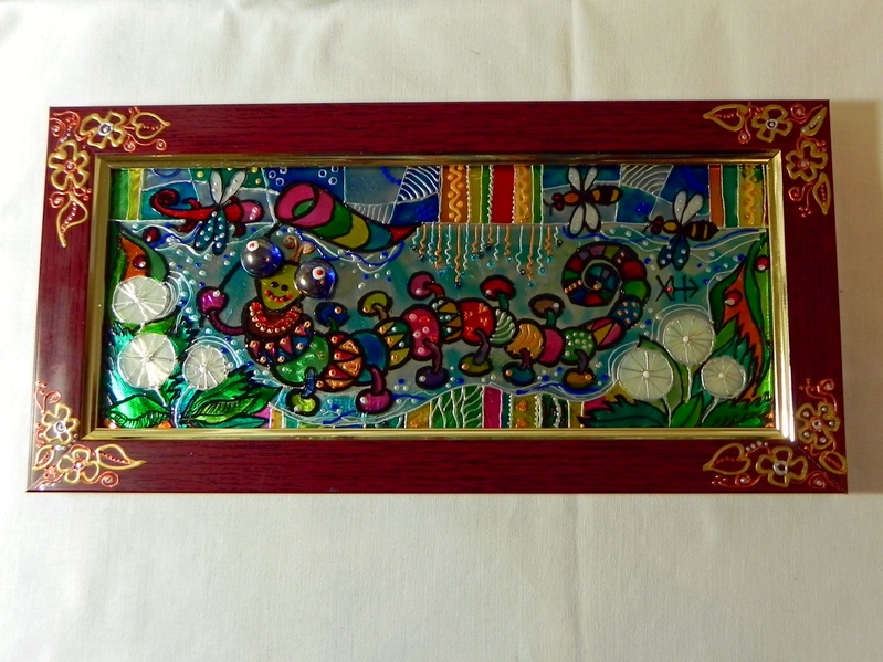 Витражная картина «Многоножка на лугу» - Картины, рисунки