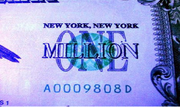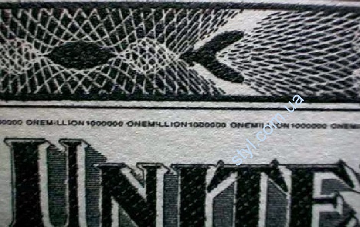 На лицевой части, прямо над надписью "United States of America" видна полоса с микрошрифтом, со словами - "One Million / 1,000,000". Шрифт настолько мелкий, что его невозможно воспроизвести на каком либо принтере. Только специальное оборудование.