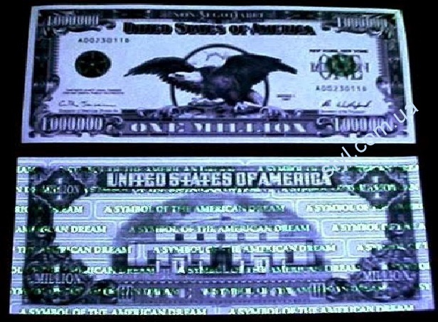 Корпорация “Секрет Американской Мечты” выпустила партию эксклюзивного исполнения коллекционной сувенирно-подарочной банкноты достоинством в 1 000 000 (один миллион) долларов США.