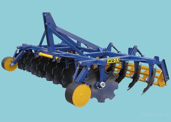 Агрегат дисковый навесной (дисковая борона, дископлуг) АГД-3,5 предназначен для обработки уплотненных почв разного механического состава с измельчением и внедрением растительных остатков в почву.