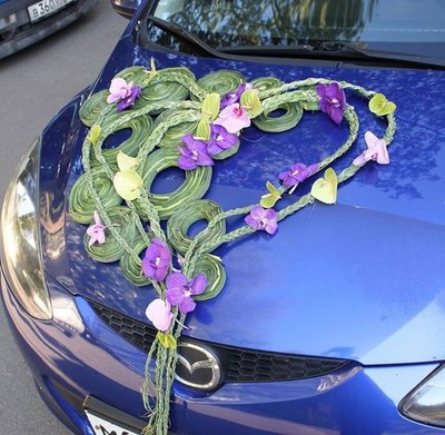 Украсим Ваше авто композицией из живых цветов, Бутоньерки на двери, ленты на капот и многое другое под заказ. Цена на композиции из цветов от 600грн. |