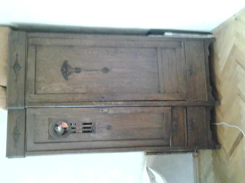 Шкаф деревянный,первая треть ХХв. Ширина-116см,глубина-45см,высота-104см.Состояние среднее,требует реставрации,но не рухлядь. |