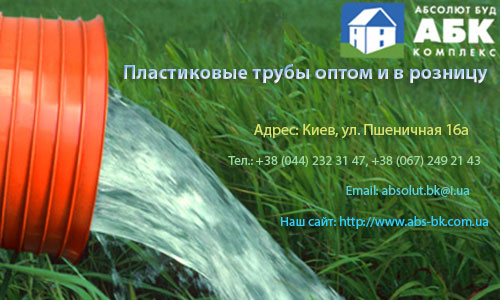 Компания "Абсолют Буд Комплекс"специализируется на оптово-розничной торговле пластиковыми трубами для водоснабжения, газоснабжения, канализации, дренажа, промышленной запорной арматуры и чугунных ремонтно-соединительных фитингов.Также наша компания производит монтаж как внутренних так и наружных инженерных сетей.Заказывайте на сайте http://www.abs-bk.com.ua/ или звоните по телефонам +38 (067) 249 21 43, +38 (044) 232 31 47 |