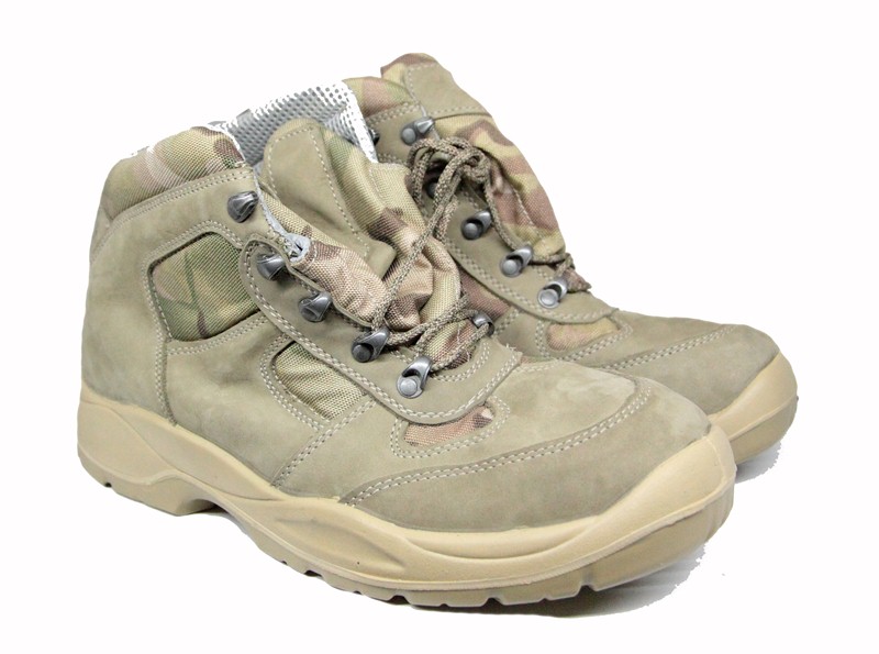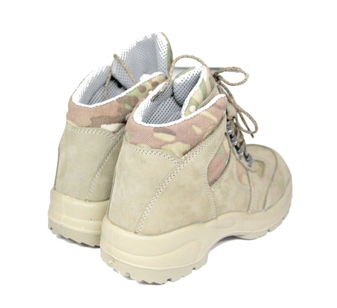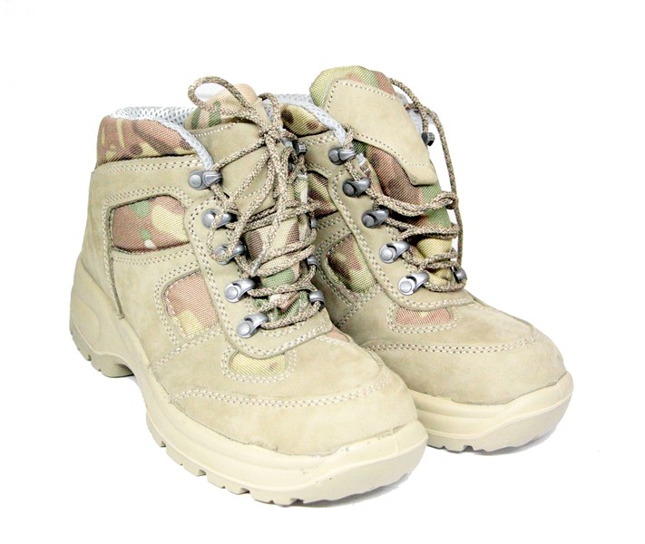 Ботинки, летние, с вентиляционной вставкой, кожаные, с подошвой из вспененного полиуретана, благодаря чему пружинят при ходьбе и имеют малый вес. Вставка выполнена в стиле Нова форма Украинской армии.