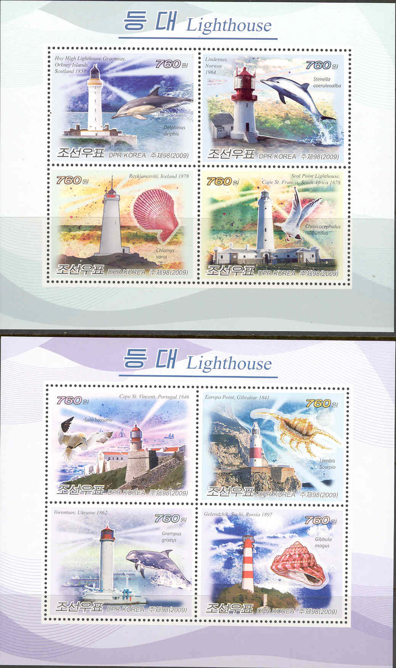 Маяки стран мира и морская фауна. - Почтовые марки