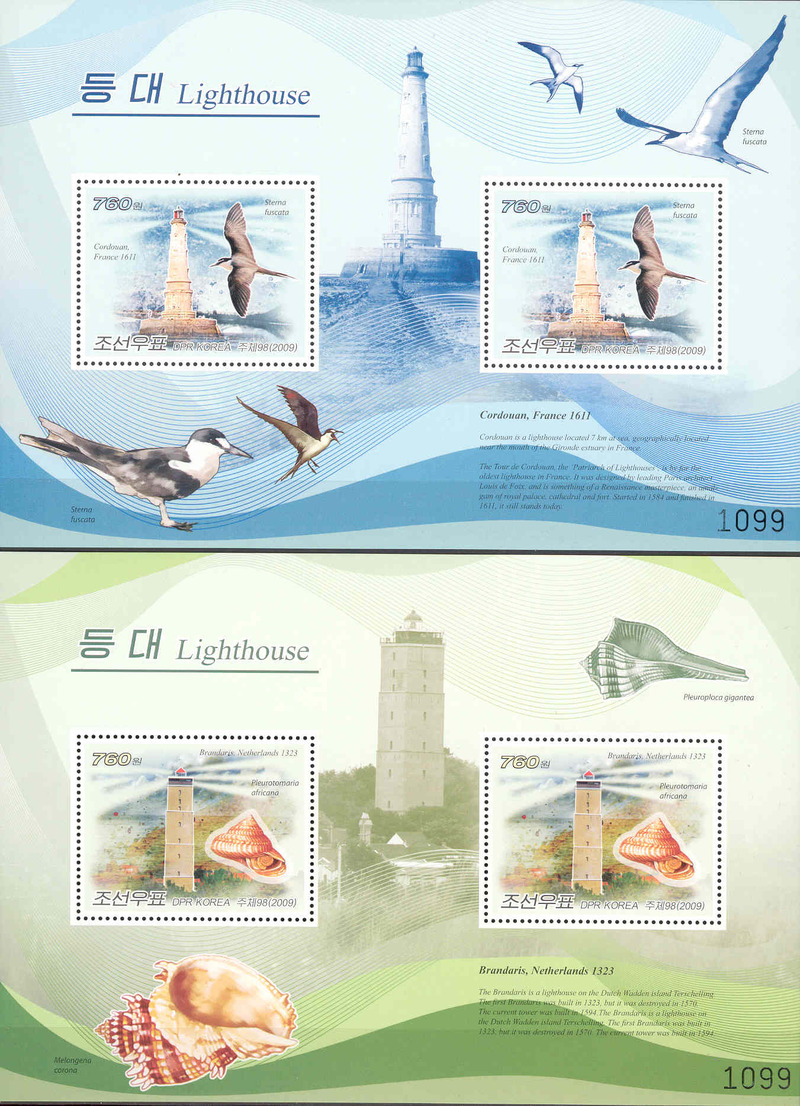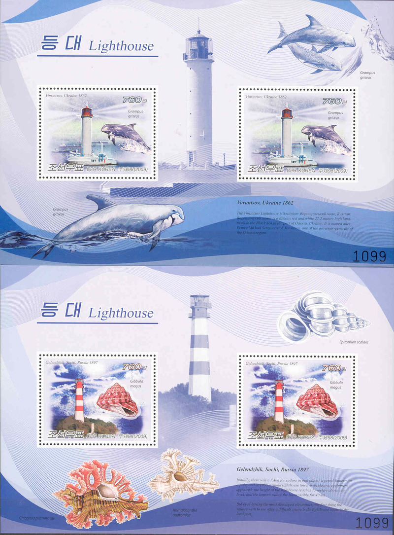 Предлагаю на продажу или обмен по предварительной договарёности чистый (MNH) комплект из 25 блоков Сев. Корей 2009 г. «МАЯКИ СТРАН МИРА И МОРСКАЯ ФАУНА». Michel Blocks 736-740 + Blocks 741-760 = 480 M€ |