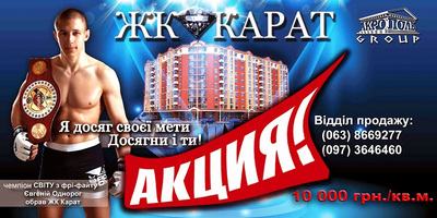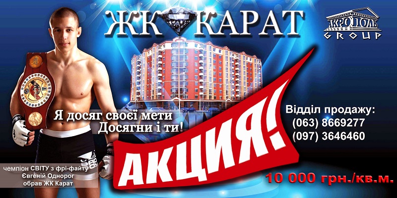 Акционная 1-к квартира в Ирпене ЖК КАРАТ. Зеленый район города, развита инфраструктура, рядом транспорт до Киева ( 15 мин. м. Академгород). В комплектацию входит чистовая отделка под обои, лазерная стяжка, двухкамерные стеклопакеты, хорошие входные двери, счетчики, подвод всех коммуникаций. Отопление автономное, двухконтурный котел в ПОДАРОК! Квартира теплая, просторная, светлая с эркерным окном. Есть кладовка. Дом из красного кирпича, утеплен, красивая архитектура, дополняет облицовочный кирпич. Акционная цена 10 000 грн. за кв.м. Так же предоставим без % рассрочку в гривнах. ЖК КАРАТ - ВЫБОР ЧЕМПИОНОВ! Ждем Вас! http://karat-dom.com.ua/ |