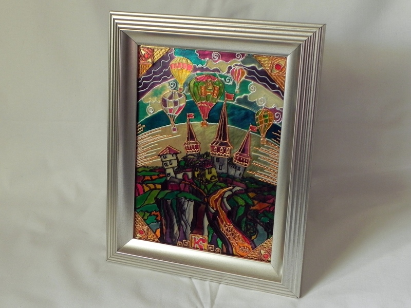 Серия : "Города любимые". Размер живописного поля: 200 Х 150 (мм). Витражная картина выполнена витражными красками и контурами по стеклу. Сочетание сказочных мотивов волшебного замка с реальным видом крепости в Каменце-Подольском будет интересно и детям и взрослым. Отличный подарок путешествующим туристам и тем,кто был в Каменце, и тем кто планирует визит. Яркий праздник - парад воздушных шаров воодушевит любого туриста и эта картинка оставит воспоминание зримым! Современная серебристая рамка гармонически сочетается по стилю картины. (Доставка : =НП= или самовывоз) |