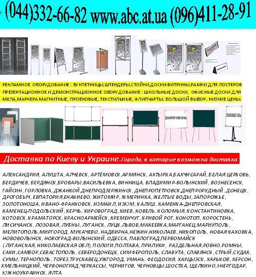 Доски для письма мелом и маркером (школьные,офисные и аудиторные одноэлементные и трехэлементные магнитные доски). Широкий выбор. Интересные цены. Доставка по всей Украине. Аксессуары. Весь ассортимент и Прайс-лист на сайте: www.abc.at.ua (044)332-66-82,(096)411-28-91 |