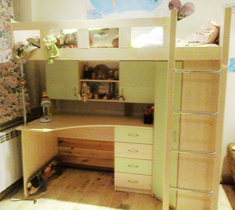 Предлагаю бу детский мебельный уголок универсального цвета - подойдёт как для девочки, так и для мальчика (4 мебельные единицы в 1 конструкции и всё занимает в длину 185, 5 см, шириной 0,89 см, высотой 1,78 см): письменный стол с 4 выдвижными ящиками, шкаф с перекладиной для вешалок и ячейками для вещей, книжные полки, кровать на 2-ом ярусе. Был в использовании не больше 2,5 лет. Состояние отличное. |