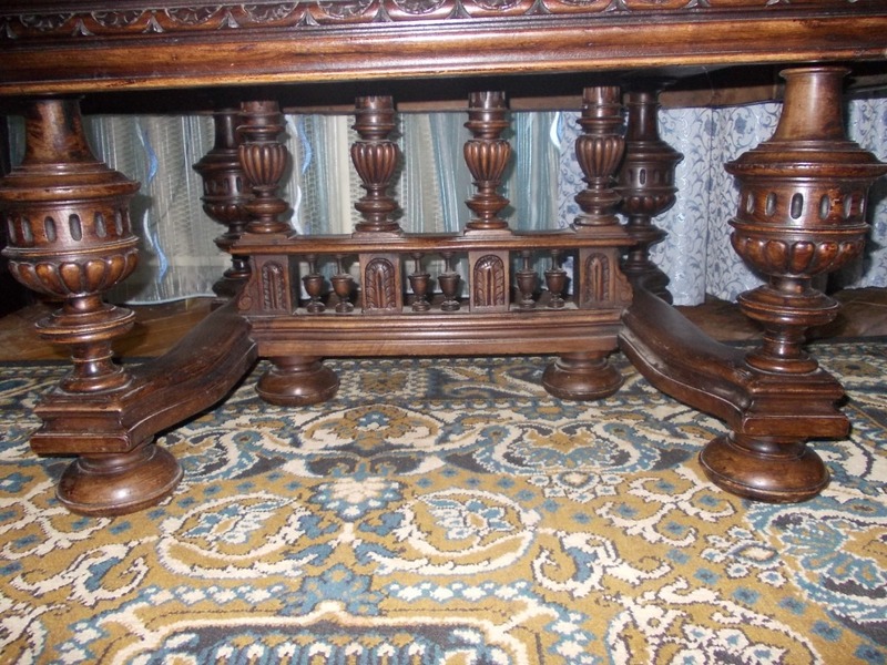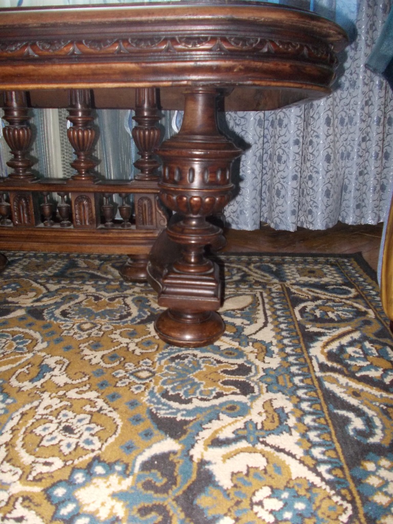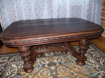Стол начало 20 столетия с элементами резьбы, массивный ,низкий . Размеры 115 на 85 см, высота 50 см. состояние хорошее. |