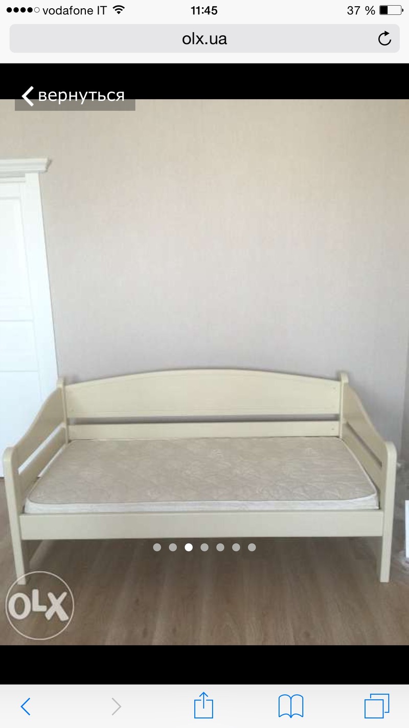 Новая кровать, собранная, размер 180*90, матрац очень хорошего качества, новый, в пленке, прочная, цвет слоновая кость, не подошла в детскую по размеру. Купленная в ТЦ Диамант, за 5570 грн. |