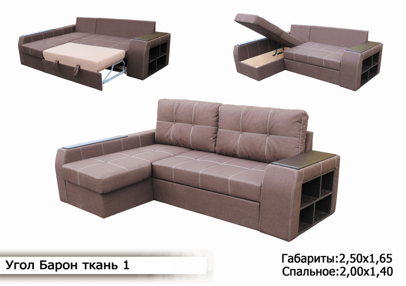 Презентабельный угловой диван Барон выполнен в классическом стиле. Широкие подлокотники и мягкие декоративные подушки делают данную модель максимально удобной. Подлокотники декорированы накладками МДФ. Надежный механизм трансформации «Дельфин» обеспечивает просторное спальное место, изготовленное с применением пружинного блока.
