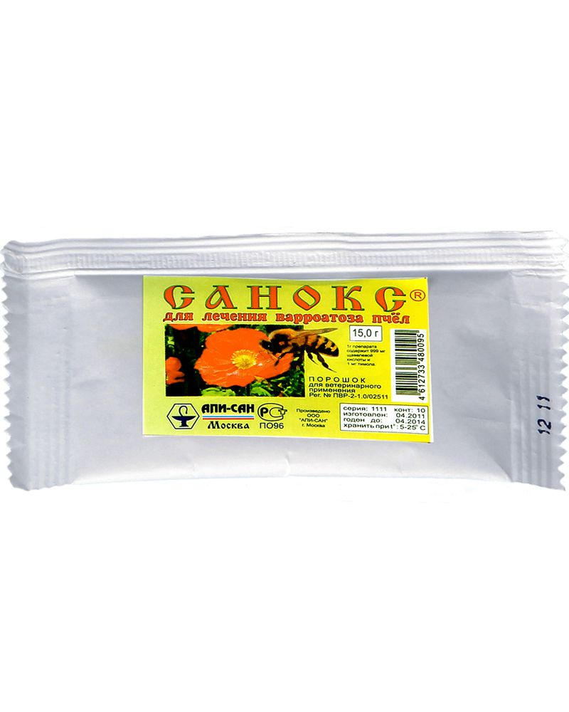 Самыми ярым паразитом и врагом пчел считается клещ варроа. По сей день это самая актуальна проблема пчеловодства. Проводя научные исследования, компания Апи-Сан выпустила препарат Санокс, который изготовлен на основе самых эффективных компонентов. В состав Санокса входят тимол и щавелевая кислота, которая эффективно уничтожает клеща варроа. Помимо этих ингредиентов, в состав Санокс входит много солей и щелочных металлов, которые обладают высокой химической активностью. Препарат изготовлен на дистиллированной воде, или кипяченой водопроводной.
