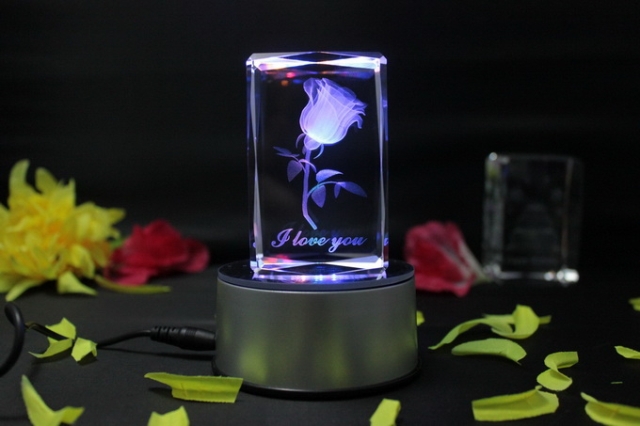 Светильник с 3D гравировкой розы и надписью «I love You» - выполненный с помощью метода объемной лазерной гравировки, светильник-ночник Роза в стекле может стать замечательным подарком любимой девушке или жене на годовщину, День рождения, и День Святого Валентина. Порадуйте свою любимую половинку таким значимым подарком, и ее сердце будет принадлежать вам вечно.