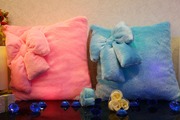 Подушка квадратная с бантиком, антистрессовые квадратные подушки, декоративная подушка в машину, светящаяся Led подушка.