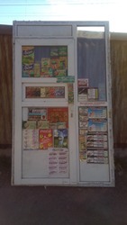 Продам стеклопакет.Ранее использовался на торговой точке.Состояние как новый.На метало конструкции защитная пленка.Высота 236,5см ширина 142см.В наличии замок,откидная форточка для торговли. Стоимость 2000грн Хороший торг.0966006659 |