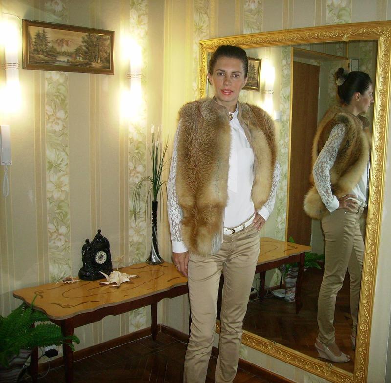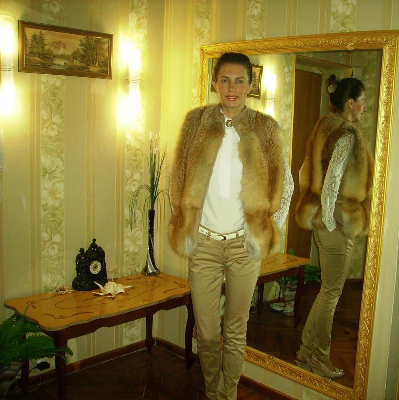 Продам жилет из лисы. Спереди и по спинке шикарные цельные шкуры из качественной лисы-огнёвки, По бокам и на стойке замш в цвет. Застёгивается молнией, сбоку обьём талии регулируется ремешками. Утеплён слоем синтепона (2см). Размер изделия- 46-48 (обьём груди 92-96, обьём талии 74-78, обьём бёдер-95-100, длинна изделия 65см). Жилет из лисы – это доступная возможность выглядеть шикарно и модно при любой погоде. Возможен пошив этой модели по вашим параметрам и с учетом ваших пожеланий. |
