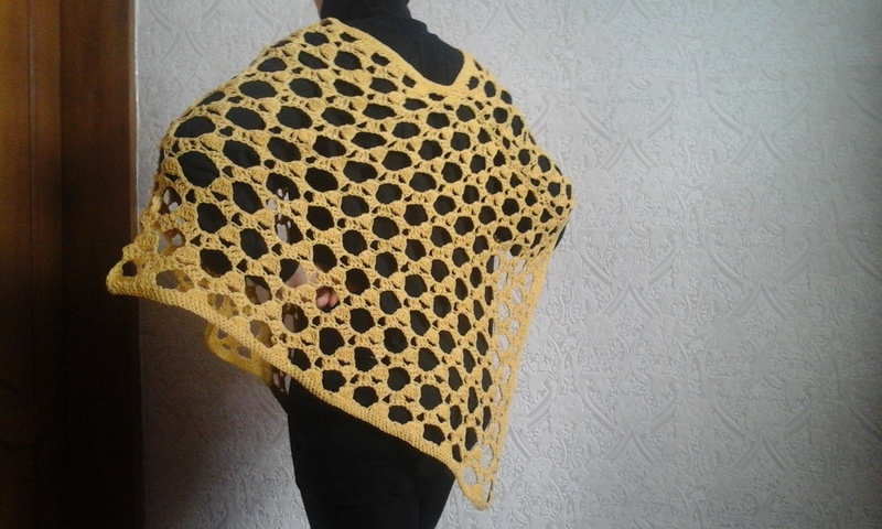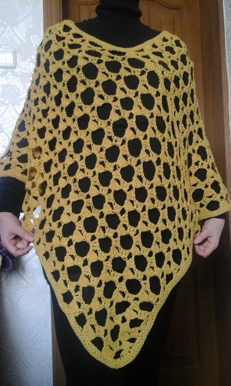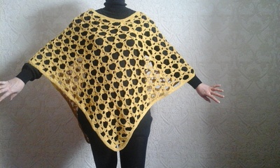 Предлагаю вашему вниманию связанную крючком ажурную накидку. Состав натуральная шерсть , но очень приятная и мягкая на ощупь. Стильная накидка , это не только дополнение к вашему образу , но еще и теплая , уютная вещь , которая вас согреет. Накидка имеется в двух цветах : темно синий и желтый. |