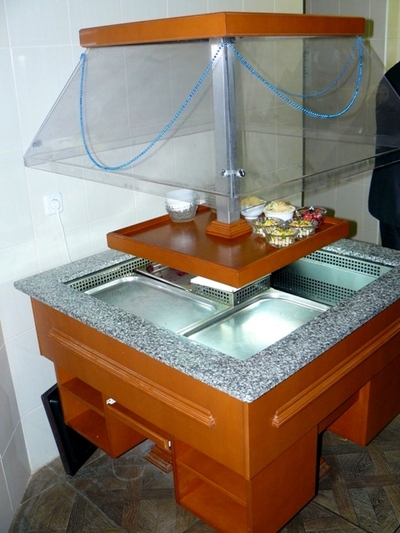 Продам салат бар бу Igloo Natalia для кафе, баров, ресторанов. Используется для организации шведских столов , банкетов, кейтеринга. Конструкция позволяет организовать свободный доступ к блюдам со всех сторон. Витрина оборудована подсветкой и куполом, а также автоматическим размораживанием и оттайкой конденсата. В дополнении включена гранитная столешница.