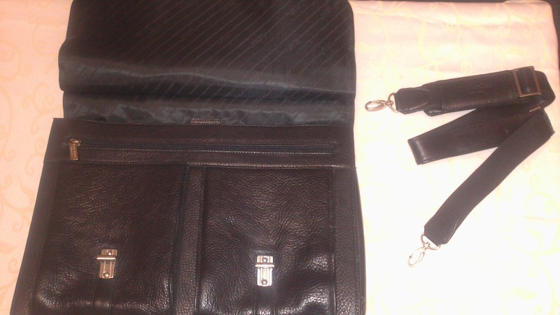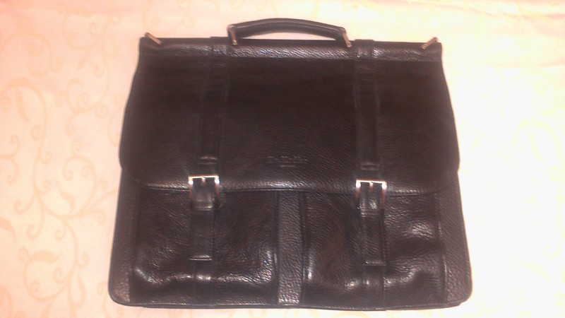 Солидный, прочный портфель на саквояжной планке с удобным современным дополнением – специальной секцией для ноутбука. Под фальш-ремешками – надежные язычковые защелки. Над двумя передними объемными карманами – молния, а за ней – удобная секция для важных бумаг. В первом отделении – кармашки бизнес-блока: для мобильного телефона, ручек, визиток. А во втором – та самая секция для 13-дюймового ноутбука или проигрывателя: пропоролоненная, на липучке-прихватке. На обратной стороне модели – карман на скрытом магните. Сохранился характерный запах и приятный скрип натуральной кожи. Привезен из США в качестве подарка, использовался несколько раз (очень бережно). В состоянии не отличимом от нового. Новый стоит около 7000 гривен без доставки. Реальному покупателю, при встрече, хороший торг.