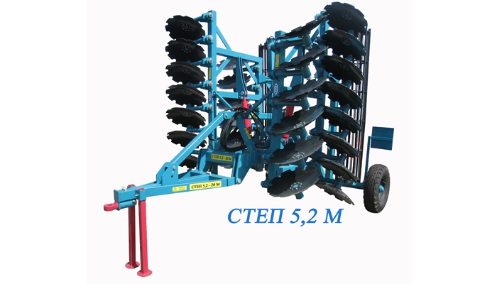 Агрегат почвообрабатывающий дисковый СТЕП М прицепной с шириной захвата от 5,2м до 5,87м — предназначен для обработки почв всех типов на глубину 5 - 18 см челночным способом, создают оптимальную природную структуру грунта для роста растений и прикатывают верхний слой почвы для сохранения почвенной влаги.