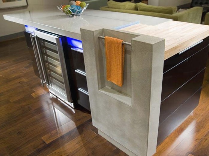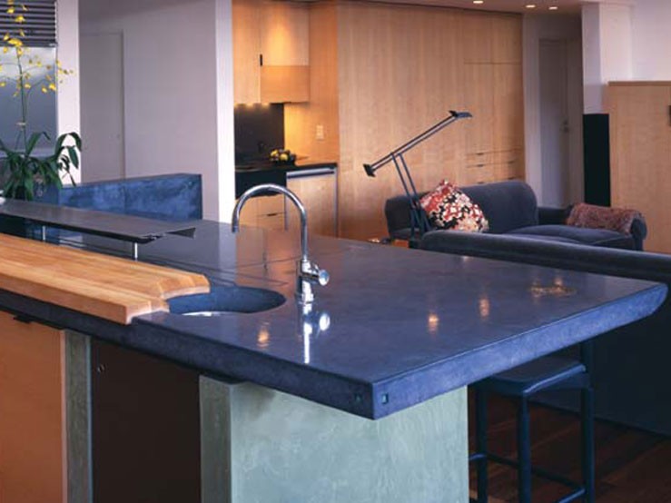 Столешницы из декоративного бетона изготавливаются по индивидуальному заказу и являются альтернативой дорогим столешницам из натурального (гранит, мрамор) и искусственного (столешницы, изготовленные на основе эпоксидных или акриловых смол) камней.