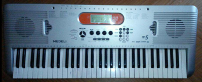 синтезатор встроенная акустика клавиш: 61, невзвешенные количество тембров: 300 функция обучения интерфейс USB для подключения к ПК компактный корпус с подключаемыми педалями 940x136x356 мм, вес 3.75 кг питание от батареек/аккумуляторов Синтезатор MEDELI m5, в хорошем состоянии, все рабочее,есть вход для наушников и других гарнитур. - присутствует потертость нескольких клавиш ( это не отображается на работе самого синтезатора) так же есть держатель для нот |