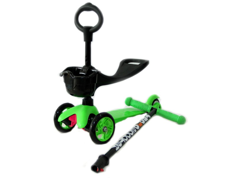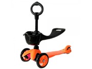 Он укомплектован сиденьем, невысокой О-образной ручкой и стандартной Т-образной ручкой. Для самых маленьких лучшим вариантом будет комплектация О-образная ручка и сиденье. Для детей, которые более уверенно чувствуют себя на ногах, сиденье можно снять. Позже, когда ребенок подрастет О-образную ручку можно заменить на более высокую Т-образную. Теперь и маленький ребенок может самостоятельно передвигаться на самокате.