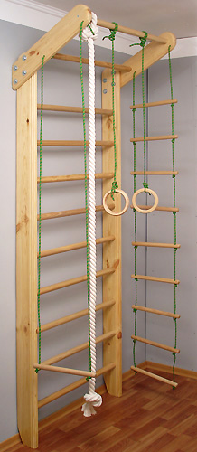 Габаритные размеры: Высота — 230 см Ширина — 80 см Глубина — 55 см Диаметр перекладин — 35 мм Размер упаковки (шведская стенка): 14см х 14см х 210см В комплект входит: — Шведская стенка «Сосна» — веревочный комплект (канат, кольца, трапеция, веревочная лесенка) Допустимые нагрузки: — шведская стенка — до 120 кг Материал: — боковины — сосна — перекладины — ясень Больше товаров на сайте: www.sportkroha.com.ua |