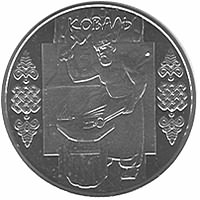 Номинал 5 гривен. Монета из нейзильбера 2011 год. Монеты посвящены кузнечному ремеслу — обработке железа методом горячей ковки. Уже в Х–ХІІ вв. кузнечное мастерство достигло такого высокого уровня, что некоторые способы обработки железа и технологии изготовления орудий труда и предметов бытового назначения без существенных изменений дошли до нашего времени. |