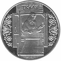Монета номиналом 5 гривен из нейзильбера Ткачиха, 2010 год. Монеты посвящены одному из важнейших видов хозяйственной деятельности и художественной культуры украинцев, являющеюся неотъемлемой частью домашних занятий каждой крестьянской семьи — ткачеству. С древних времен на территории Украины занимались обработкой волокна из льна,шерсти. |