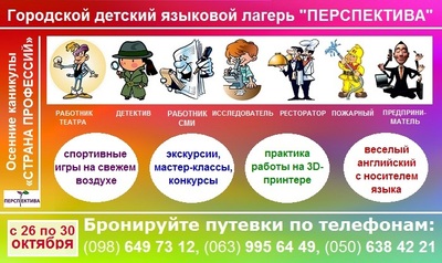 Приглашаем любознательных и активных школьников в наш городской лагерь «Страна профессий» во время осенних каникул.
