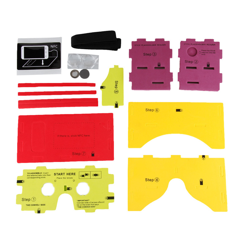 В комплекте: 1 х Кардборд EVA; 2 х магниты; 1 х ремешок на голову; 1 х NFC метка; 1 х инструкция по сборке;