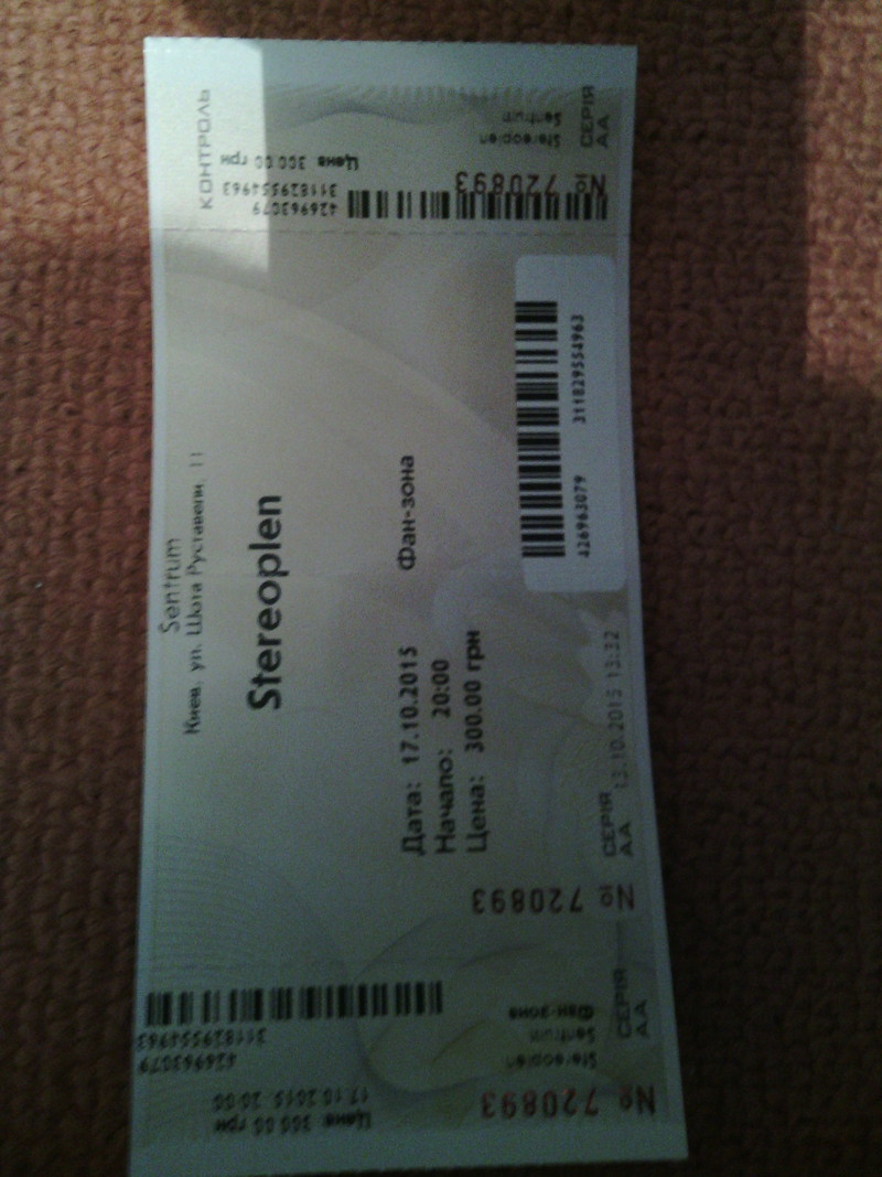 Продам, предлагаю - частное лицо: Билеты на концерты, Украина, Киев и областьКод: 527129 Создано: 16-10-2015 17:27