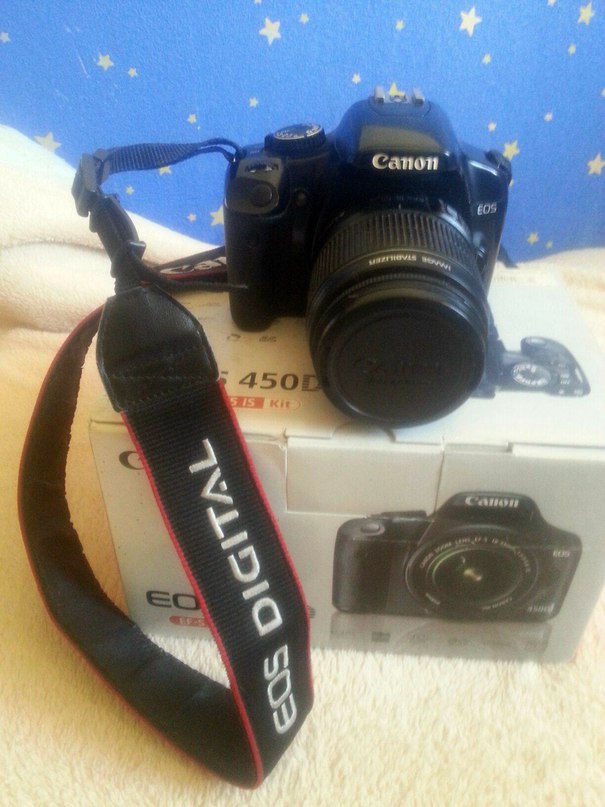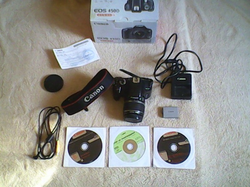 Продам зеркальный фотоапарат Canon EOS 450D в хорошем состояние. Продаю поскольку нужны деньги. Продажа: личная встреча Киев и Киевскав области Комплектация полная: - Объектив Canon EF-S 18-55 MM f/3.5-5.6 IS II - Li-Ion аккумулятор LP-E5, - Зарядное устройство LC-E5E, - Сетевой кабель, - Видеокабель, - USB кабель, - Наплечный ремень, - Диск с ПО. |