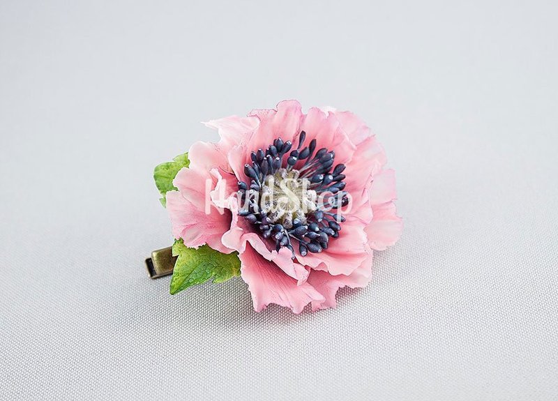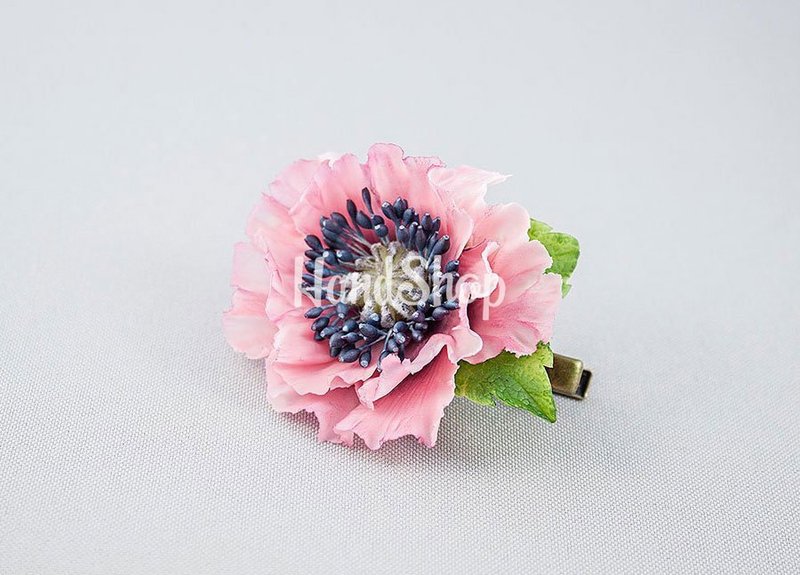 В комплекте: заколка брошка — зажим для волос и брошь из полимерной глины с цветком розового мака 5-6 см. Заколка брошка 2 в 1 выполнена с полимерной глины на металлической основе размером 4,5 см |