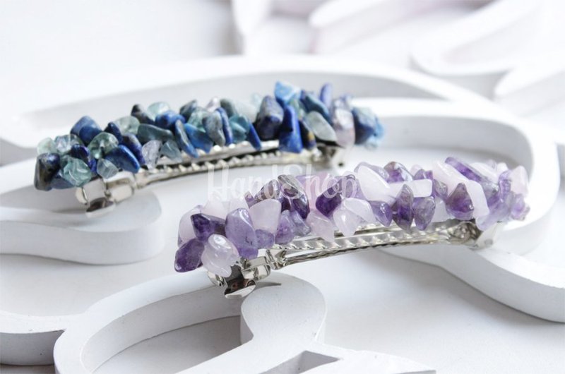 В комплекте: украшения из натуральных камней — обруч для волос универсального размера и заколка автомат 8,5 см из флюорит камень и розового кварца. Обруч своими руками с флюорита и розового кварца в нежно фиолетово-розовой гамме |