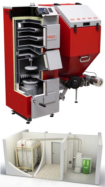 Котлы пелетные Польского производителя Metal-Fach серии SOKOL SEG BIO с автоматической подачей топлива и ручной загрузкой. Это новое поколение котлов в отопительном оборудовании. Благодаря авторподжигу котла робота происходить в автоматическом режиме на пеллетах и угольной семечке. Преимущество котла – вертикальный обменник, который позволяет достигать максимальный КПД. В качестве резервного топлива можно сжигать дрова и уголь в ручном режиме. Современная автоматика Fuzzy Logik 300L з PID позволяет подключение 3-х насосов, 1-го смесителя, погодозависимой автоматики и контролера комнатной температуры. Корпус котла изготовлен из высокого качества стали марки P265GH (котловая сталь) толщиной 6-8мм в зависимости от мощности котла, что позволяет длительную службу котла. Котёл может работать в двух режимах работы: - автоматический режим с использованием механизма подачи топлива; - ручной режим (дрова, уголь). Мощность от 14-150 кВт Основное топливо: пеллеты качества DIN1; угольная семечка фракция 5-25мм. Резервное топливо: дрова и уголь (до 50 кВт) Котлы оснащены контроллером Fuzzy Logic 300L который позволяет работать в трех режимах работы лето/погодный/ручной. Пользователь имеет возможность редактировать параметры, отвечающие за горение. Даже неопытный человек может легко настроить котел для удовлетворения своих потребностей. Контроллер FL300L:может помочь Вам экономить до 20% топлива. ПРЕИМУЩЕСТВА •автоматическая робота котла; три режима роботы; •стальные колосниковые решётки; -регулятор дымовой тяги; -возможность подключения PID (датчик температуры выхлопных газов)*; -сертифицирована сталь /тип P265GH/; -современная автоматика; контролер с управлением 1—2-х насосов для ц.о. и ГВС*; -высокий КПД свыше 90%; -5 лет гарантии на герметичность теплообменника, 2 года на автоматику; -возможность подключения опции SONDA LAMBDA (регулирует вентилятор); -автоподжиг*; -4 вида топлива. WEB: http://ecoprincip.com.ua/, E-mail:ecoprinc@gmail.com Тел: 068716-25-05, 093500-15-45, 099610-31-38