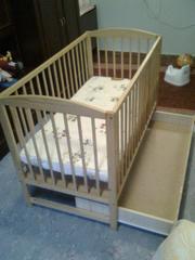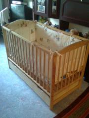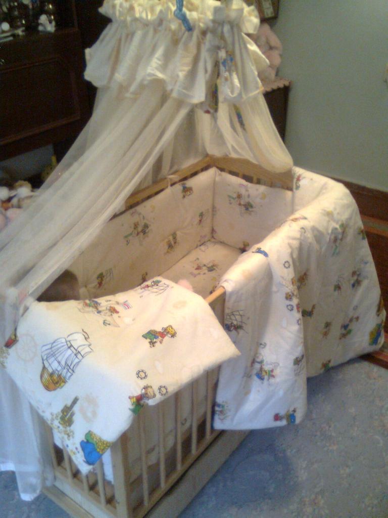 Продам детскую кроватку б/у с ортопедическим матрасом, c полным комплектом постельных принадлежностей, производство Австрия, чистое нелакированное полированное дерево в идеальном состоянии. Цена - 950 грн.