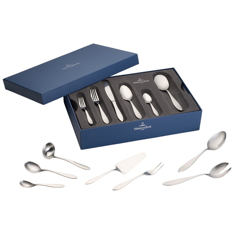 Набор столовых приборов Villeroy & Boch коллекция Arthur состоит из 68 предметов и рассчитан на 12 персон. Кроме основных столовых приборов в комплект входят различные сервировочные предметы. Великолепная нержавеющая сталь 18/10, из которой изготовлены все предметы из набора – залог долговечности и прочности столовых принадлежностей. Страна производитель –Германия. Набор упакован в фирменную коробку. Комплект: Ложка столовая – 12 шт Ложка десертная – 12 шт Вилка столовая – 12 шт Вилка десертная – 12 шт Нож столовый – 12 шт Половник – 1 шт Вилка для мяса – 1 шт Ложка для овощей – 2 шт Вилка для овощей – 1 шт Ложка для соуса – 1 шт Лопатка для торта – 1 шт Ложка для сахара – 1 шт |