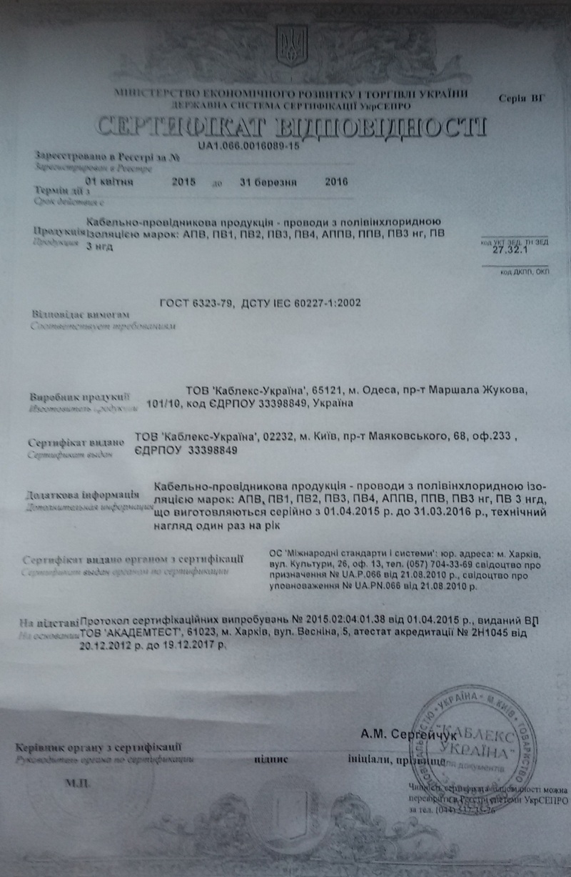 Продаем кабель, провод. В продаже имеются такие кабеля как ГОСТ ШВВП/ПВС 2*0,75, ГОСТ ШВВП/ПВС 2*1, ГОСТ ШВВП/ПВС 2*1,5, ГОСТ ШВВП/ПВС 2*2,5, ГОСТ ШВВП/ПВС 2*4, ГОСТ ШВВП/ПВС 3*0,75, ГОСТ ШВВП/ПВС 3*1,5, ГОСТ ШВВП/ПВС 3*2,5, ГОСТ ШВВП/ПВС 3*4. Наше предприятие работает на рынке кабельно-проводниковой продукции и электротехнических товаров с 2005 года. В нашем ассортименте товары, которые изготовлены исключительно в соответствии с ГОСТом! Свою деятельность начинало с розничной торговли на рынках Одессы и на сегодняшний день является поставщиком крупных строительных компаний Украины и партнером многих украинских и зарубежных предприятий. |