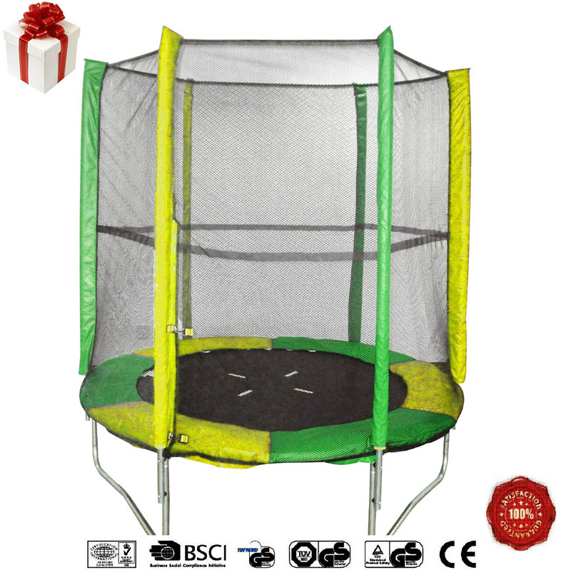 Разноцветный батут с защитной сеткой для дома и улицы, диаметром 180см. Предлагаемый батут разработан специально для детей, безопасная конструкция и размеры его спроектированы для использования маленькими детьми.